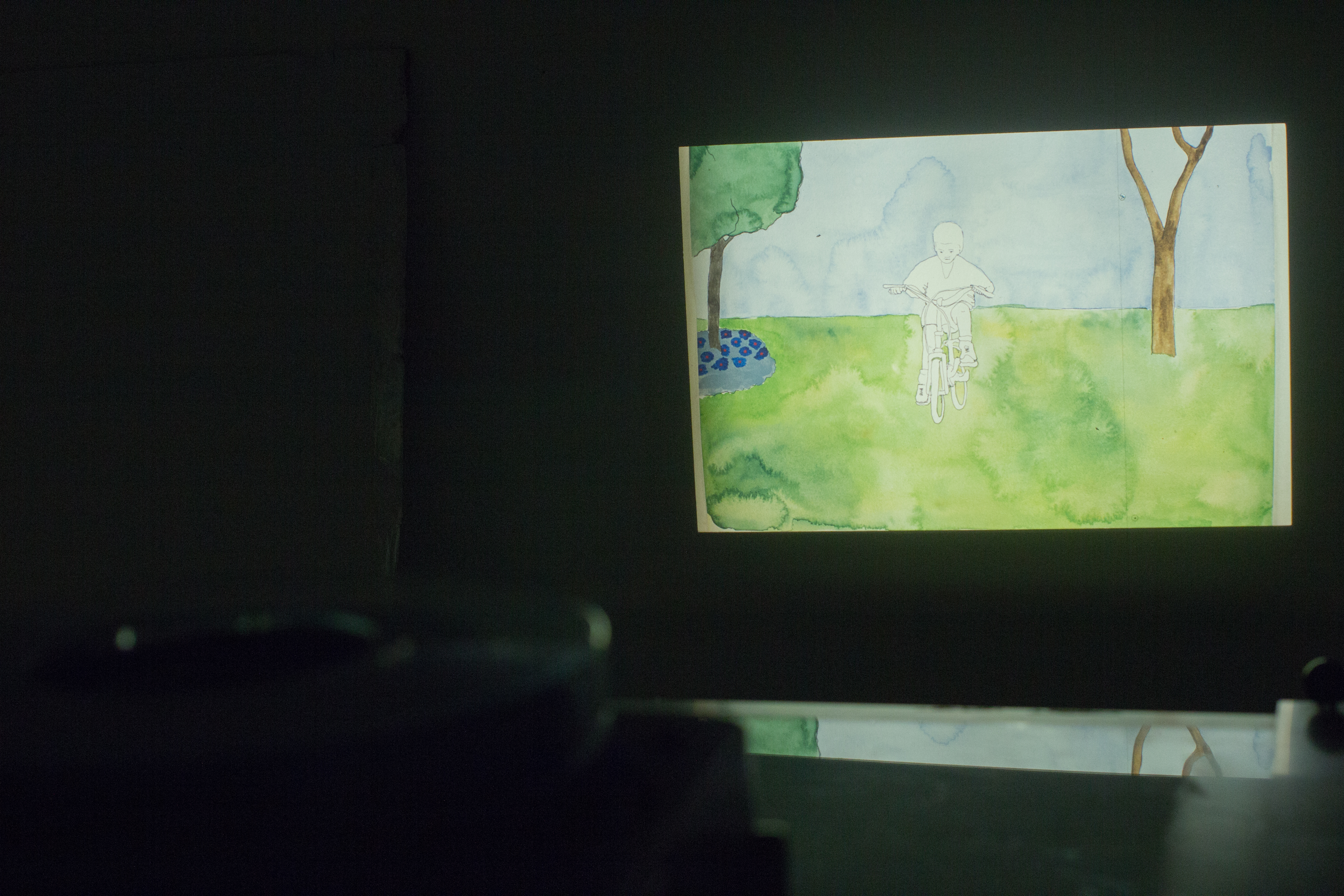 100 drawings photographed in slides and reproduced in loop with a carrousel projector